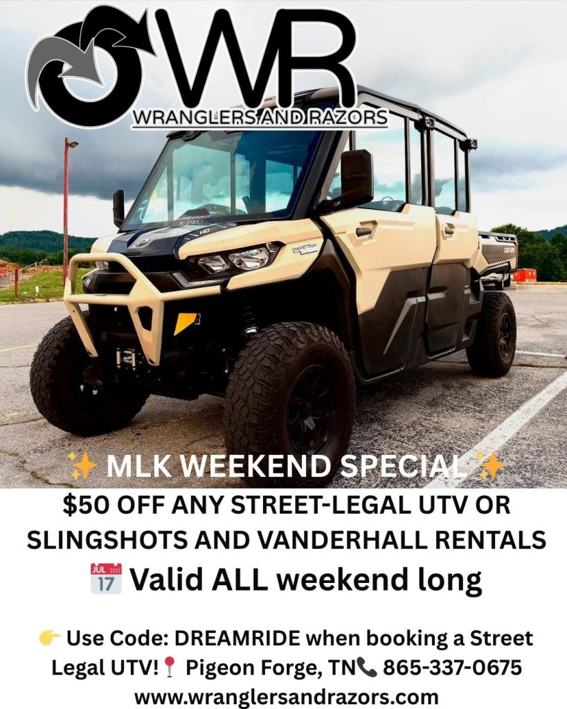 Pigeon Forge UTV. Discover the best UTV Rentals in Pigeon Forge when you choose Wranglers and Razors for Side by Sides, Razors, UTVs, ATVs, Off Road Adventures and more. Great variety of well maintained vehicles for your Smoky Mountain UTV Adventure.